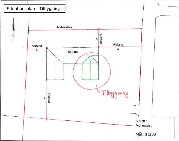 Læs mere om situationsplaner på Byg og Miljø (bygogmiljoe.dk) Eller se et eksempel på en situationsplan.