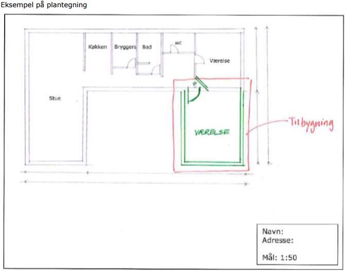Læs mere om plantegninger på Byg og Miljø (bygogmiljoe.dk) eller Se et eksempel på en plantegning