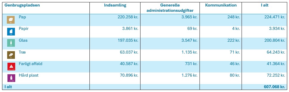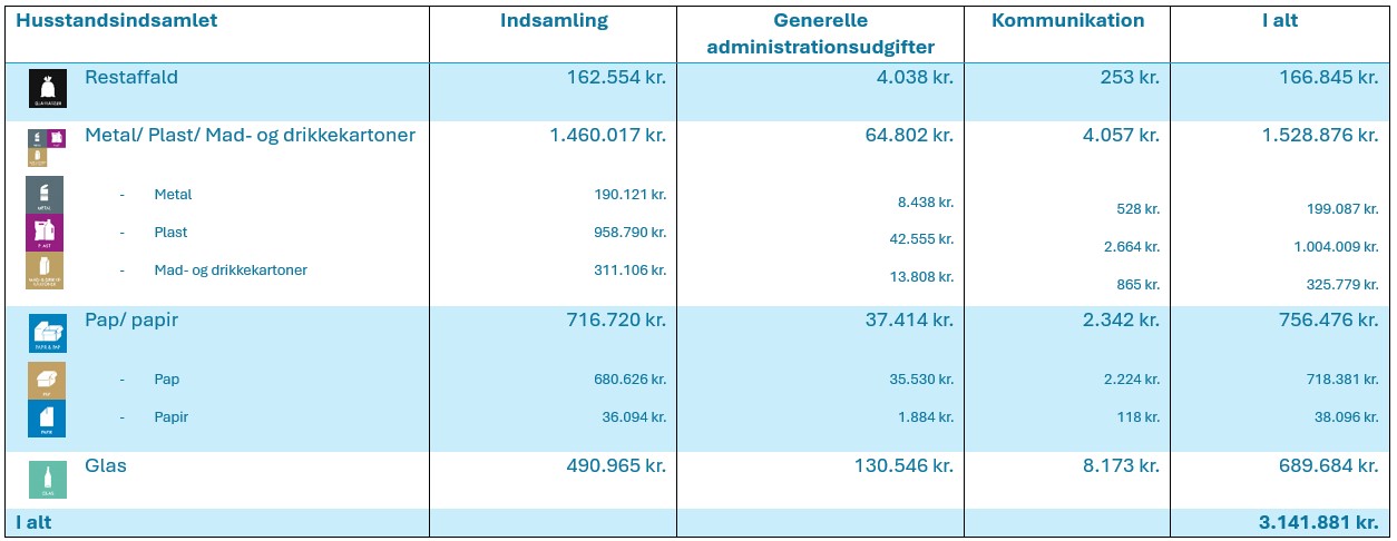 Nedenstående skemaer viser Herning Kommunes opgørelse over gebyr til producenter eller disses kollektive ordninger, der har fået tildelt betalingsforpligtelser for kommunalt indsamlet emballageaffald, jf. §101 i emballagebekendtgørelsen. Beløbet er momsfrit.