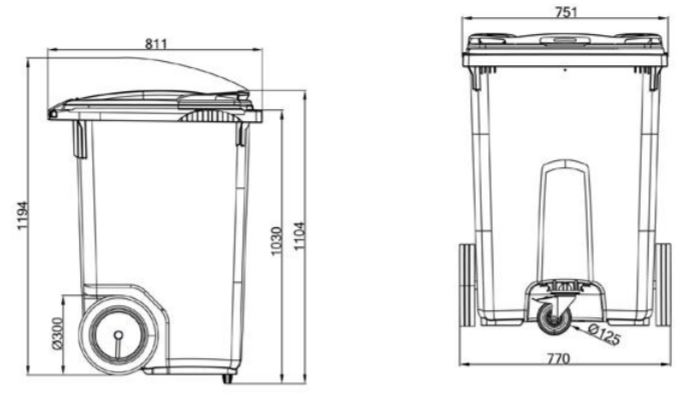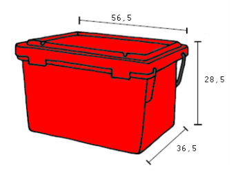 42L problem affaldskasse med angivelse af mål: 56,5x28,5x36,5 cm.