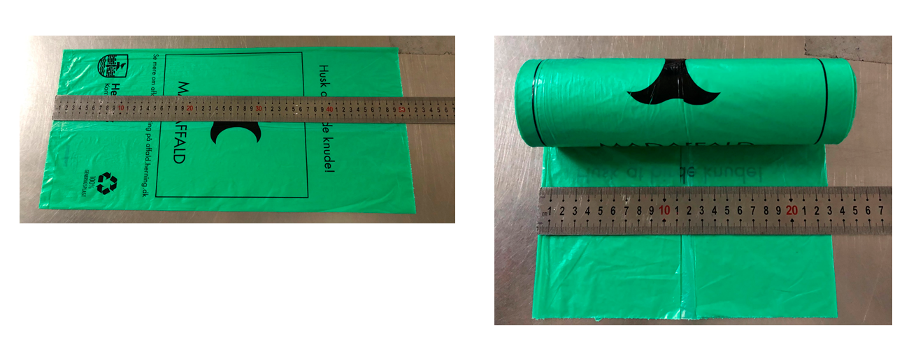 Størrelse på grønne poser til madaffald: 45 cm i bredden og 50 cm højden.