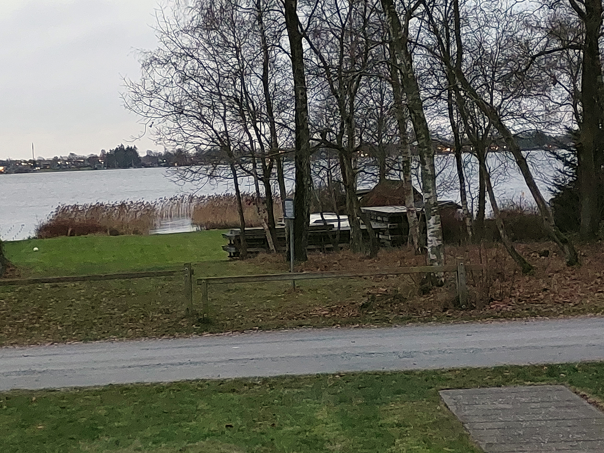Når man har nået gruset og har gået et stykke, lige inden man skal dreje til venstre ind igennem skoven kan man fortsætte 20 meter længere hen og nyde udsigten over søen.