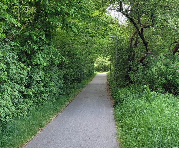 Du kommer via den asfalterede sti: