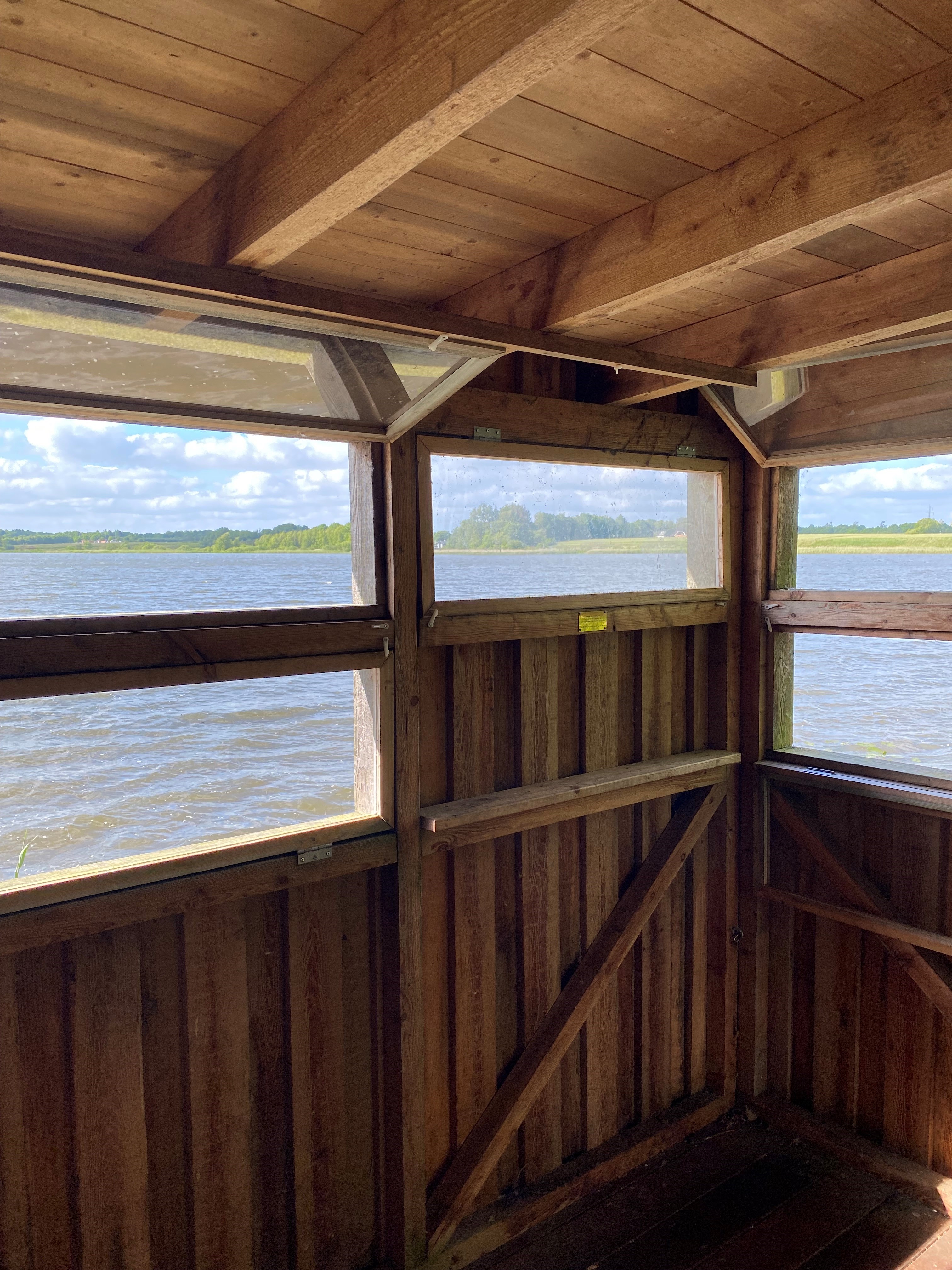 Turen til skjulet går gennem træer og videre ud på en board-walk i træ, der fører helt hen til fugleskjulet.
