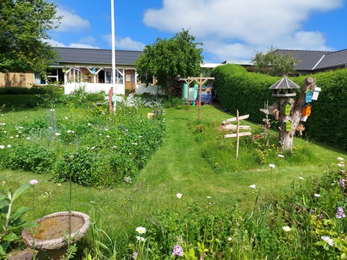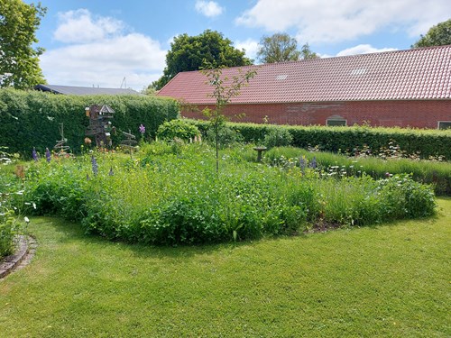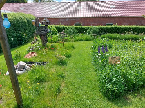 Tænk i, at variation giver mulighed for flere levesteder og dermed flere arter. Tænk gerne i, at understøtte/så/plante, så der er nektar og pollen til insekterne fra tidligt forår til sent efterår. Og tilsvarende i, at der er frøstande og bær/frugt efterår og vinter til fugle og andre dyr.