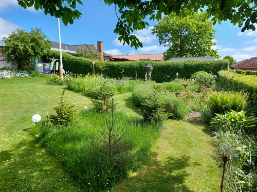 Obs.: Kør ikke evt. afgravet græstørv væk, men brug den til at bygge et lille dige/en skråning eller som bed-afgrænsning. Derved skabes et levested/voksested for flere arter.