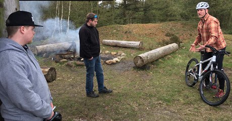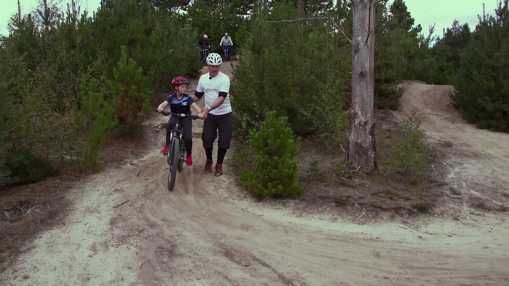 Michael underviser i cykelteknikker - hvordan virker bremser og gear, og hvordan udnyttes vægtbalancen på cyklen bedst.