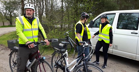 Cykelturen køres fra Løvbakke naturcenter til Ovstrup Hede. 20 km. ud og 20 km. hjem. Madpakkerne blev velfortjent nydt i udkigstårnet.