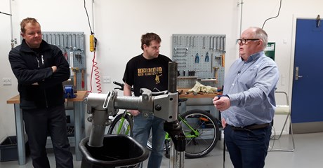 Rundvisning i cykelmekanikerværkstedet på Erhvervsskole, hvor vi blev klog på, at cykelbranchen efterspørger cykelfagfolk.