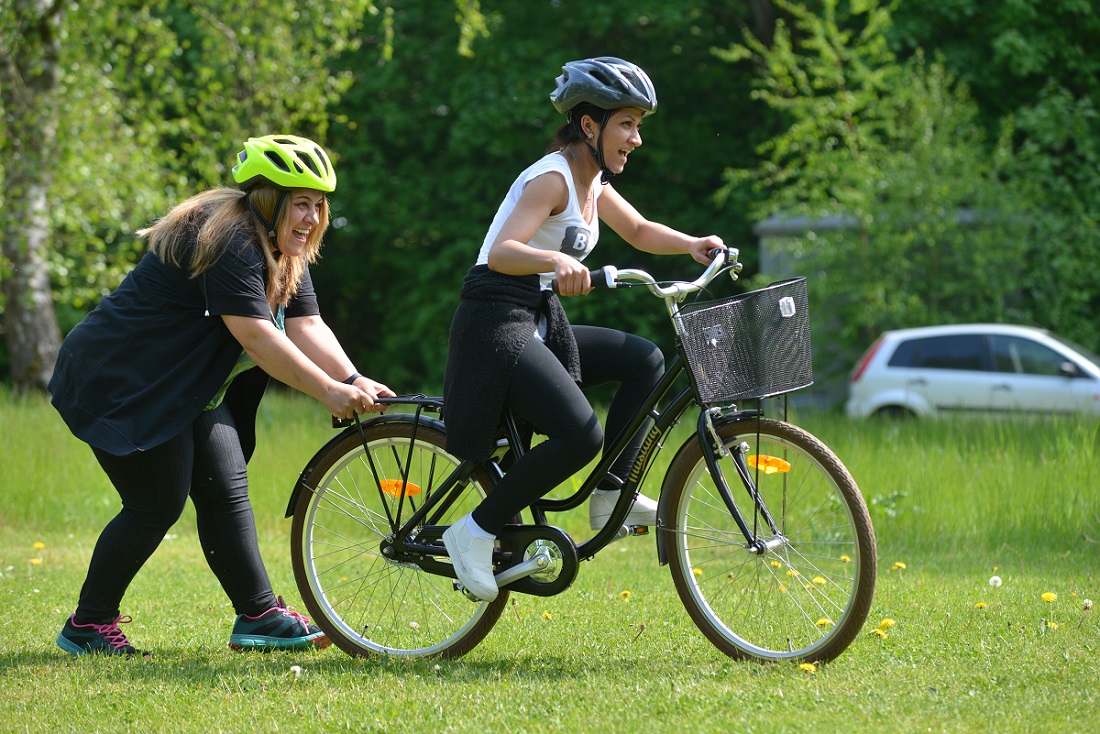Balancen og samarbejde blev også trænet ved blindecykling, hvor den der skulle cykle fik bind for øjnene og den anden skulle så guide, hvor der skulle cykles. Til at starte med en meget grænseoverskridende øvelse, men eleverne synes hurtigt, det var vildt sjovt.